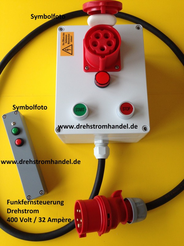 Für Drehstrom / Kraftstrom - zur Steuerung geeigneter Geräte, 400 Volt / 32 Ampère, komplett mit Gummischlauchleitung und CEE-Stecker, geprüft und sofort einsatzbereit.
