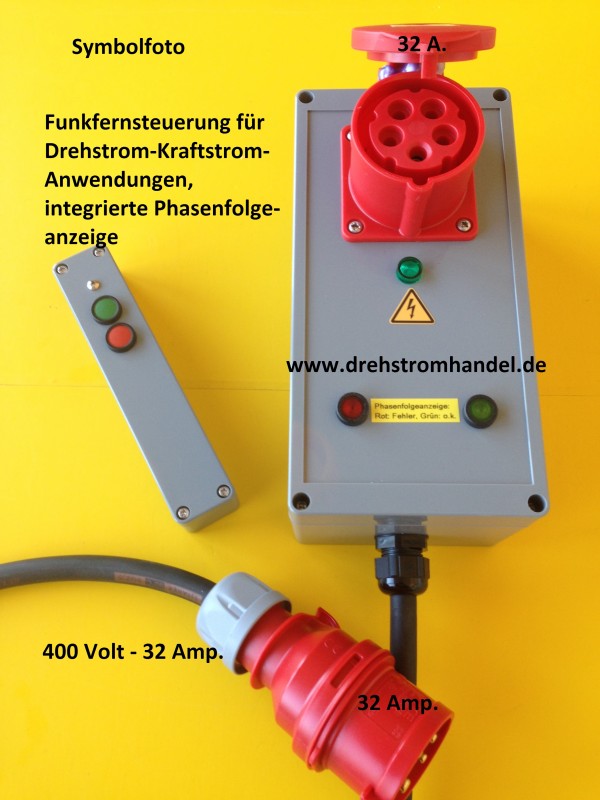Funkfernsteuerung Drehstrom / Kraftstrom mit Phasenfolgeanzeige 400 Volt - 32 Ampère / integrierte Phasenfolgeanzeige