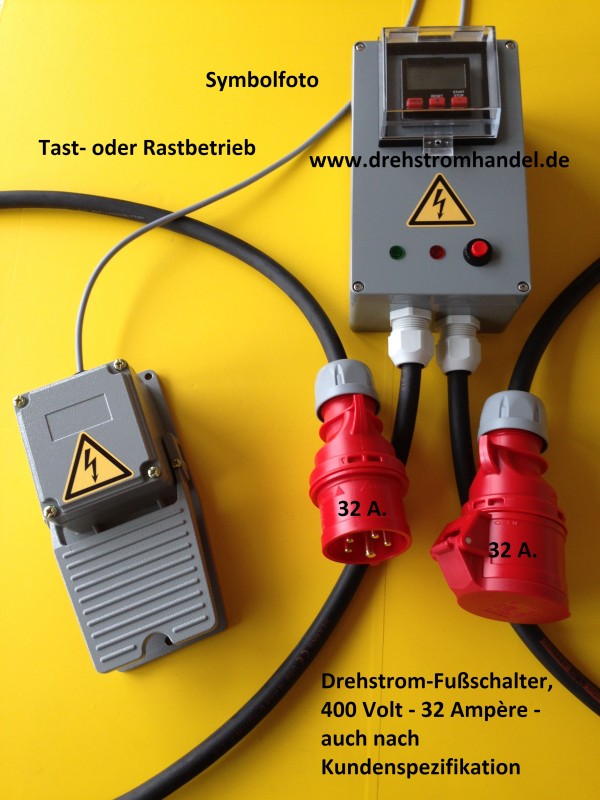 | Hersteller/Typ: | Fußschalter für Drehstrom, tastend oder rastend, 400 Volt - 32 Ampère |