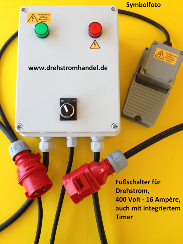 Fußschalter für Drehstrom, 400 Volt - 16 Ampère, auch mit integriertem Timer