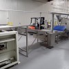 Consisting of: (1) 10" wide x 96" long rubber belt conveyor with a 0.37kw gear motor, (1) 3 roll inclined belt feeder with screw distribution, belt 42" wide x 96" long with (2) 0.37kw gear motors, (1) heavy duty 3 roll extruder, approximate 1000mm wide x 300mm diameter x 100mm shaft diameter rolls, (1) rubber conveyor belt from 3 roll extruder to 2 roll sheeter, (1) 2 roll sheeter, approximate 1020mm wide x 400mm diameter cored rollers, minimum gap opening 0.1mm x maximum gap opening 2.8mm, minimum cooling temperature 10 degrees C., maximum dough redustion 2:1, (1) driven cutting roller base, 1000mm working width, (1) scrap dough return system, (1) Outfeed oven belt conveyor, (1) Control panel with an Allen-Bradley CPU, PanelView Plus 1000, and PowerFlex 70 drives.