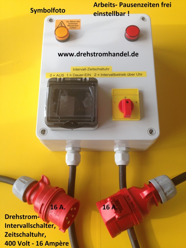 Intervallschalter / Zeitschalter für Drehstrom / Kraftstrom 400 Volt / 16 Ampère - getrennte Arbeits- und Pausenzeiten!