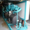 Sehr schöne und junge Bitzer wassergekühlte Ammoniak Kaltwasser Anlage, die in einem schallgedämpften Maschineraum-container mit mechanischer Kühlung eingebaut sind. Dieser Kühler besteht aus einem frequenzgesteuerten Bitzer-Schraubenkompressor (Marke Danfoss), einem WEG-Elektromotor mit 250kW, einem horizontalen Ölabscheider, einem Ölkühler, einem kombinierten Economiser/Flüssigkeitsabscheider, einem Alfa Laval-Verdampfer, einem Alfa Laval-Kondensator, Drehzahlregelpumpen von Grundfos und einem Schaftschrank mit Siemens PLC und Touchscreen.