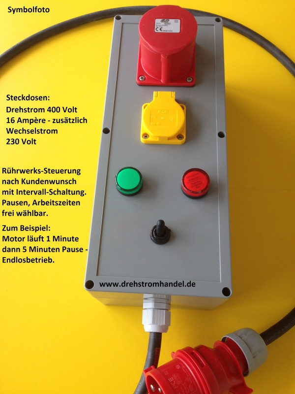 Rührwerksteuerung / Zeitschalter für Drehstrom / Kraftstrom 400 Volt / 16 Ampère + 230 Volt / 16 Ampère