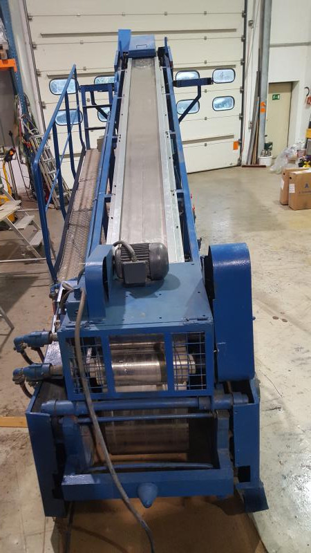 The molten extrudat emerging from the Ko-Kneader is compressed through chilled rollers into a flat ribbon. A conveying belt transports the meanwhile solid product sheet to the granulator, where it is broken into small flakes.