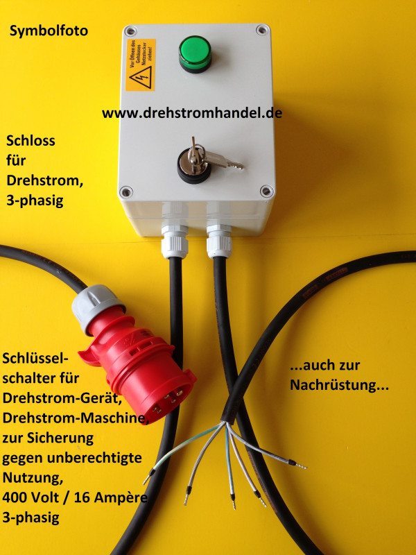 Drehstrom-Schlossschalter, Schlüsselschalter, Schaltschloss für Drehstrom / Kraftstrom, 3-Phasen-Wechselstrom - sicherer Schutz gegen die Nutzung von unberechtigten Nutzern.