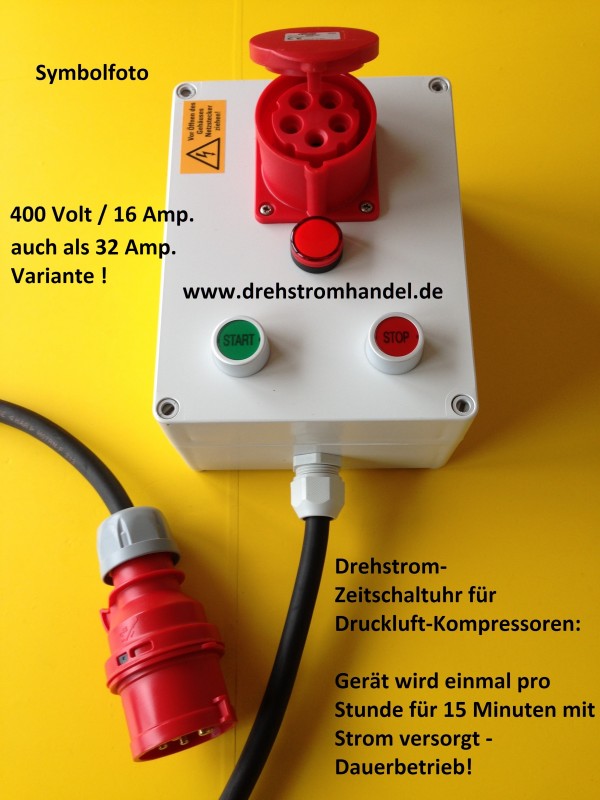 Zeitschaltuhr für Druckluftkompressor - Drehstrom / Kraftstrom 400 Volt - 32 Ampère