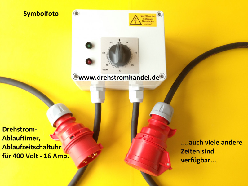 Drehstrom-Ablauftimer zur zeitverzögerten Abschaltung von Geräten, welche per Wechselstrom 400 Volt / 16 Ampère betrieben werden. Timer mit bis zu 60 Minuten Laufzeit.