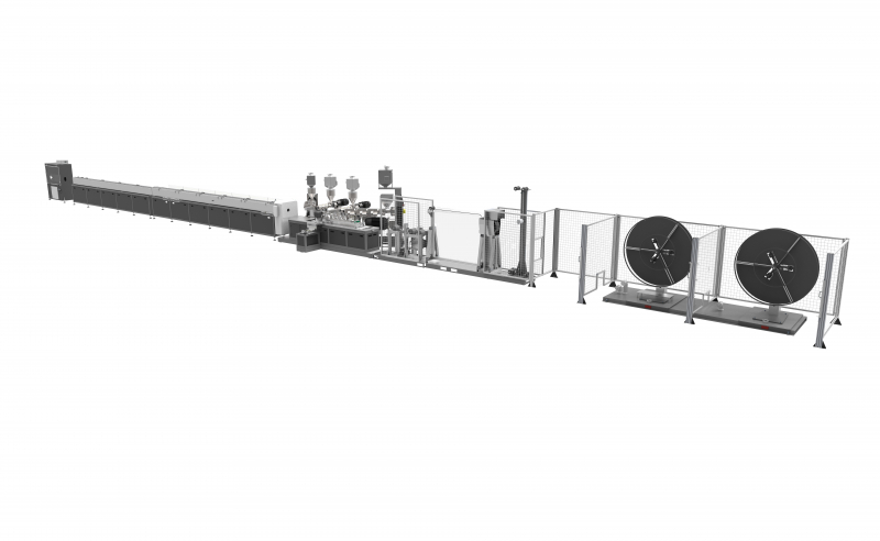 Extruder, Corrugators, Caterpillar Haul-off, Coiler, Cooling Spray Bath, Complete Lines, Multilayer Composite Pipe Production Line